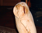 Es kann schon mal vorkommen, dass eine Skulptur sich wieder versteckt, okkult wird oder ich den Blick für eine Form verliere - dann muss es halt warten, bis ich wieder sensibel genug bin, um die Figur zu erfühlen. Bei Susannah zum Beispiel dauerte das knapp 3 Jahre. Dafür erlangte sie schon während der Rohphase eine gewisse Berühmtheit bei der Niederdeutschen Theatergruppe als EVA im Stück "Hans Brüggemann" (Schnitzmeister, u.a. Bordeshomer Altar, 1521).