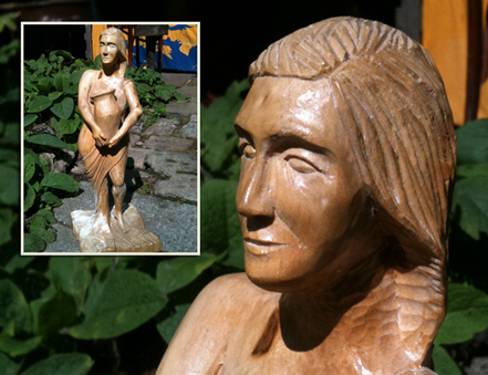Es kann schon mal vorkommen, dass eine Skulptur sich wieder versteckt, okkult wird oder ich den Blick für eine Form verliere - dann muss es halt warten, bis ich wieder sensibel genug bin, um die Figur zu erfühlen. Bei Susannah zum Beispiel dauerte das knapp 3 Jahre. Dafür erlangte sie schon während der Rohphase eine gewisse Berühmtheit bei der Niederdeutschen Theatergruppe als EVA im Stück "Hans Brüggemann" (Schnitzmeister, u.a. Bordeshomer Altar, 1521).